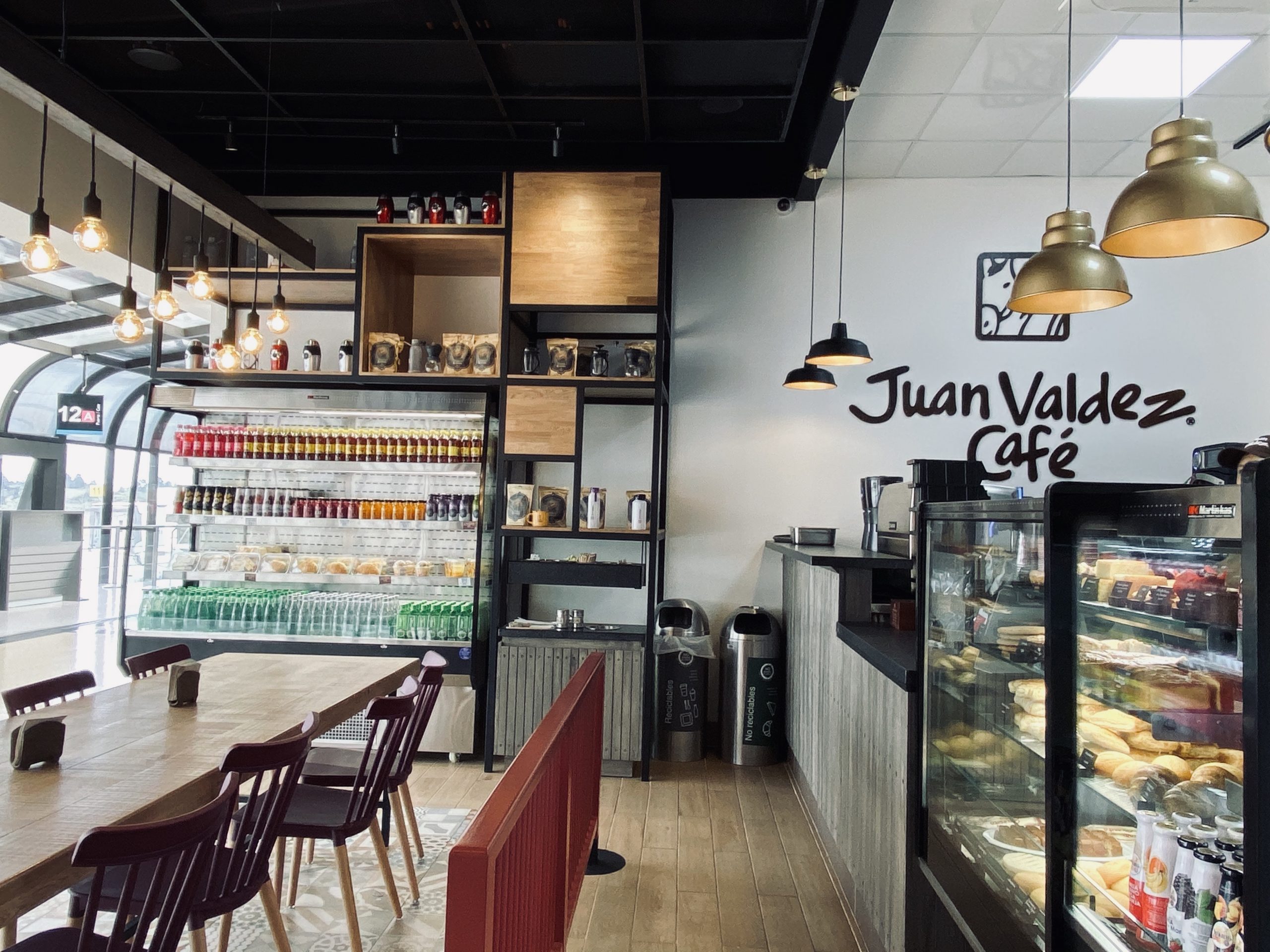 Este local abierto optimiza su espacio haciendo uso de sus paredes laterales para instalar barras e incorporar mesas y mobiliario tipo “grab & go”. En el fondo se incorpora una gran zona de atención y preparación donde una barra frontal de piedra y madera da profundidad y toma fuerza en el concepto.